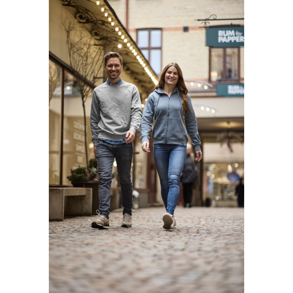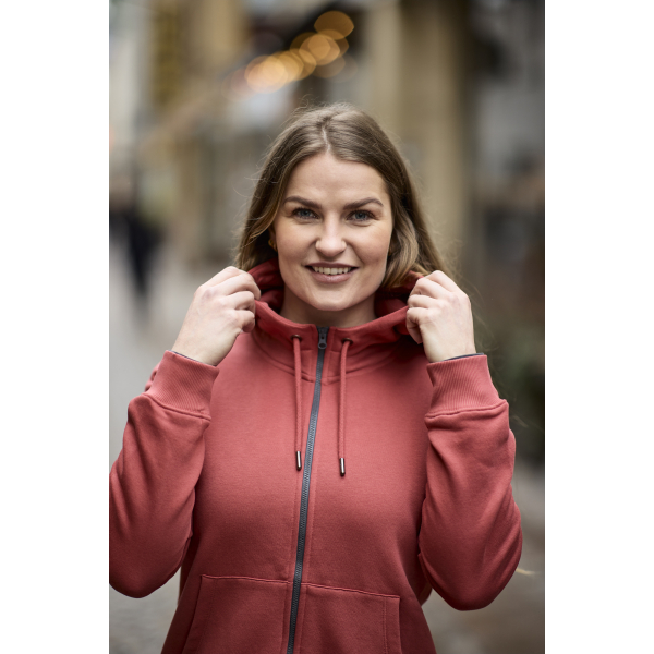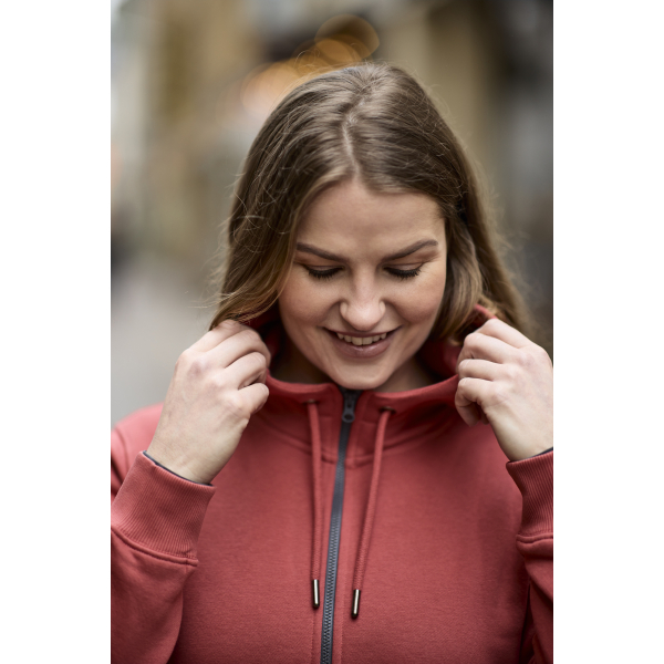 Veste à capuche de qualité, fabriquée dans un matériau confortable, doux et avec une sensation un peu plus lourde, brossé à l’intérieur. Fermeture éclair YKK Vislon® en gris anthracite. Cordon de serrage à la capuche avec des détails en métal argenté antique. Poches kangourou. Capuche avec des coutures doubles et une doublure en jersey simple. Bord-côtes 2×2 au niveau des poignets et du bas.