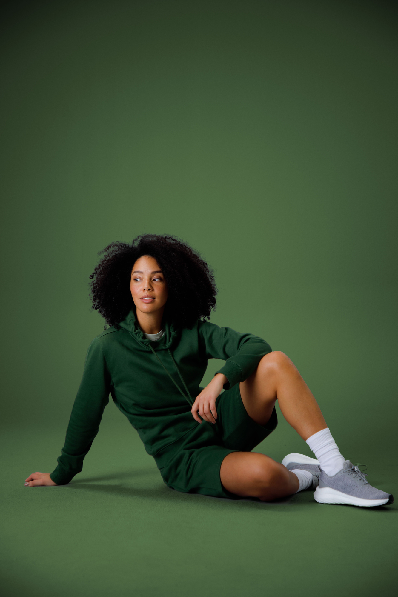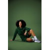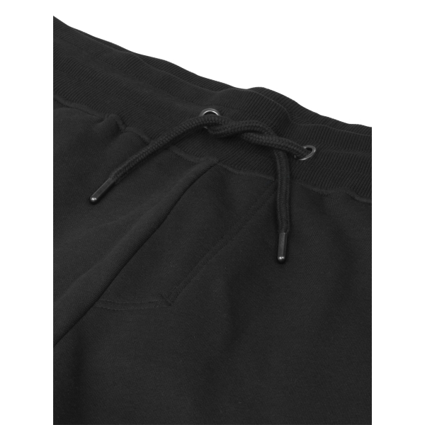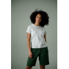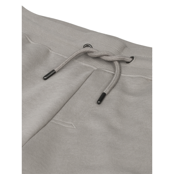 Short avec intérieur brossé et poches latérales. Taille élastiquée large en côtes 2×2 avec cordon de serrage et détails en métal argent. Coutures décoratives élégantes qui mettent en valeur le vêtement.