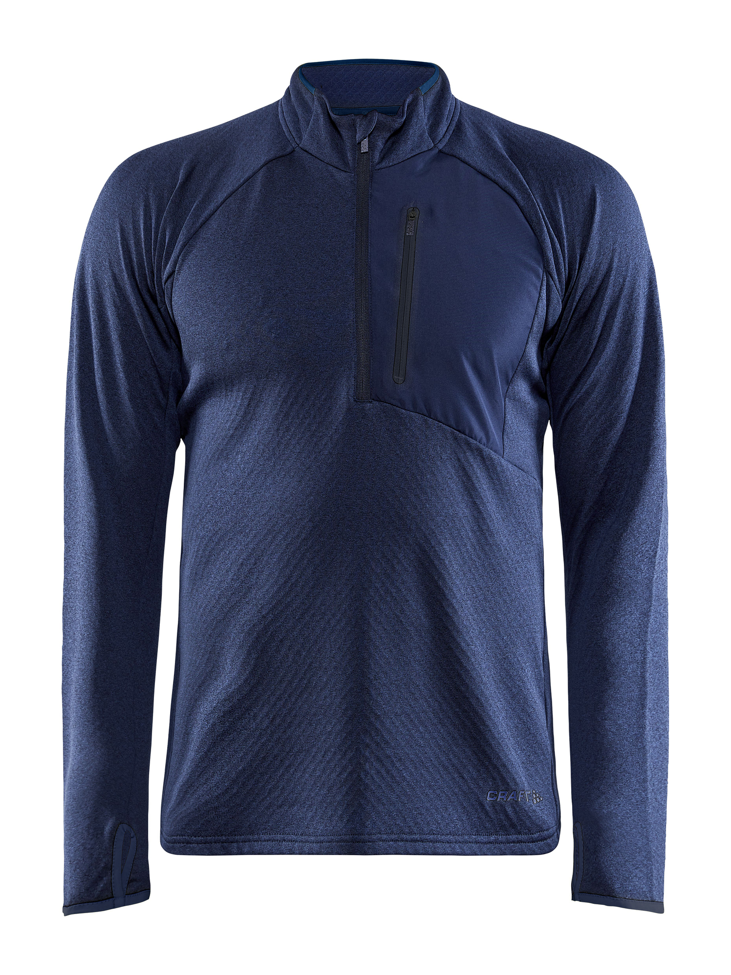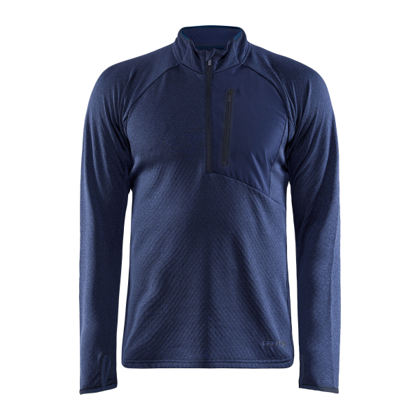 Couche intermédiaire thermique avec intérieur brossé, demi-zip et poche poitrine avec fermeture éclair.