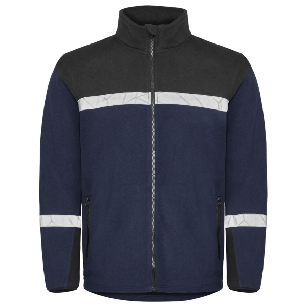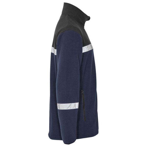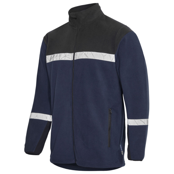 Polaire full zip – Fermeture éclair YKK Natulon – protège-menton pour éviter les frottements – Bande contrastée au col – Poches latérales zippées – Réglable avec cordon de serrage en bas – Poche à puce de lavage dans la couture latérale intérieure gauche.