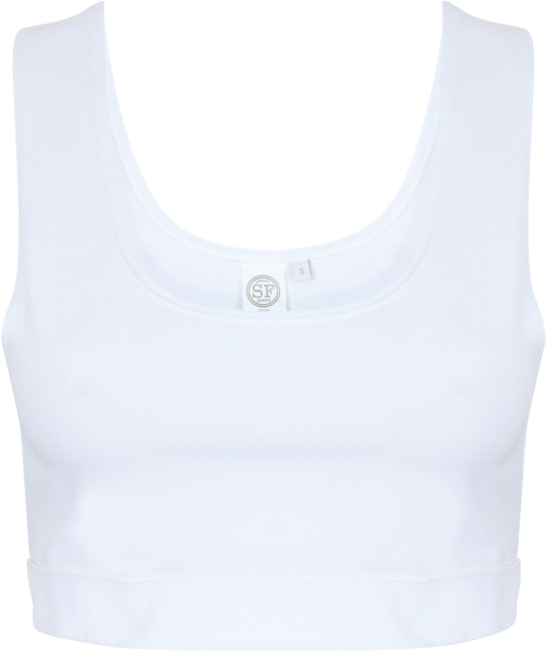 88% polyester / 12% élasthanne. Idéale pour la sublimation. Etiquette détachable. Bande élastique de soutien sous poitrine White pour faciliter l'impression. Finition double aiguille. Lavable à 4