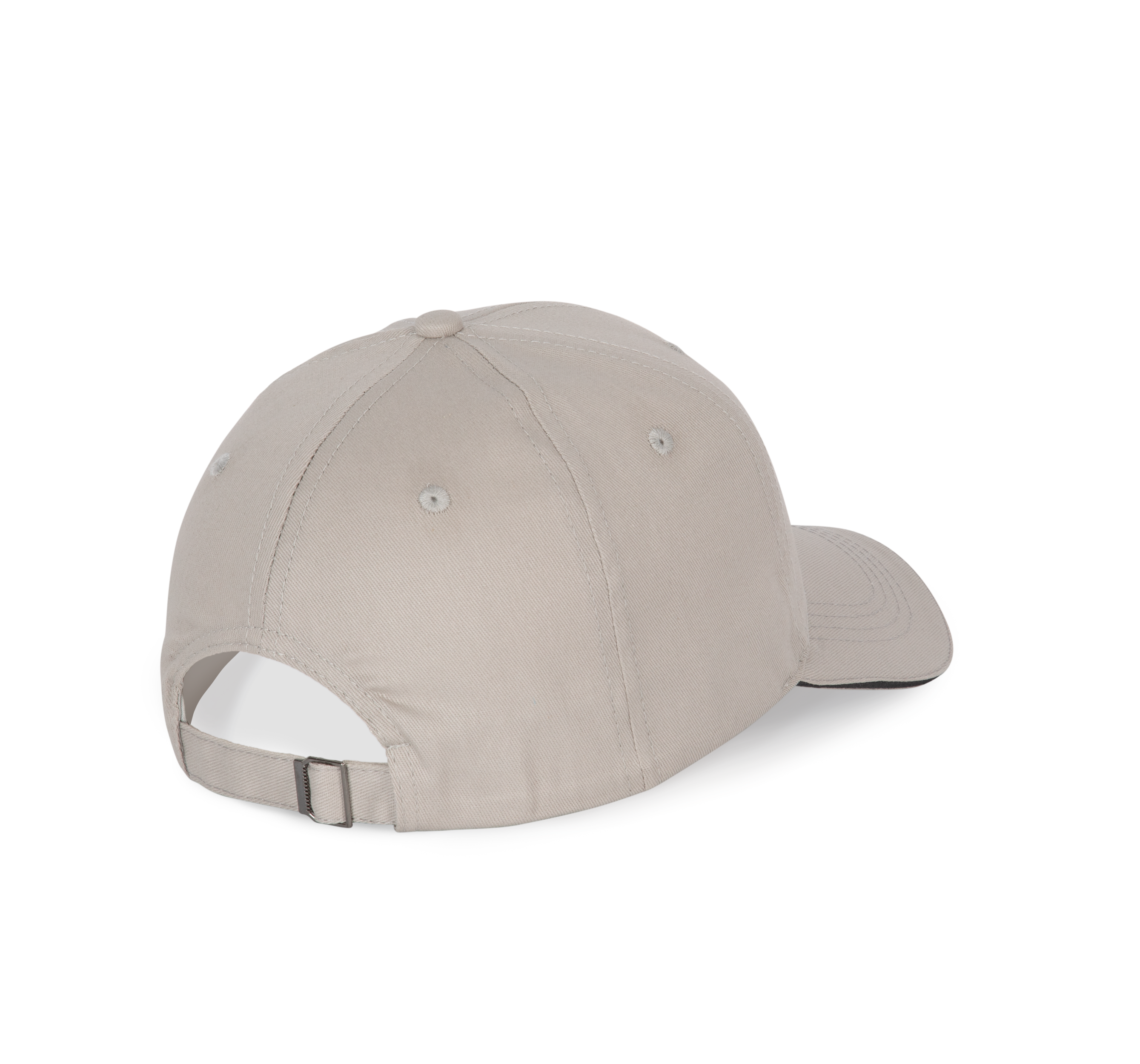 100% coton. Casquette 6 panneaux avec sandwich contrasté. Fermeture réglable par boucle métallique avec passant autobloquant.