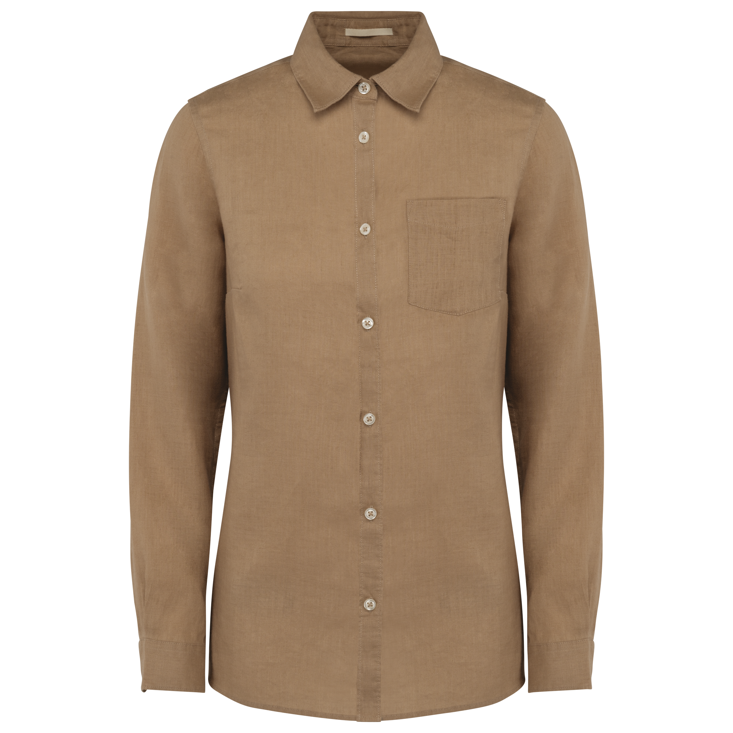 100% lin. Tissé. Coupe droite. Patte de boutonnage classique avec boutons effet nacré. Poche poitrine côté coeur. Empiècement dos avec plis d'aisance. Poignet boutonné avec patte capucin. Galon