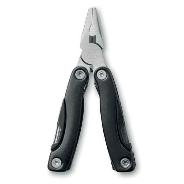 Multi-outil pliable en acier inoxydable avec pinces en acier inoxydable. 9 fonctions. Poche polyester 600D incluse.