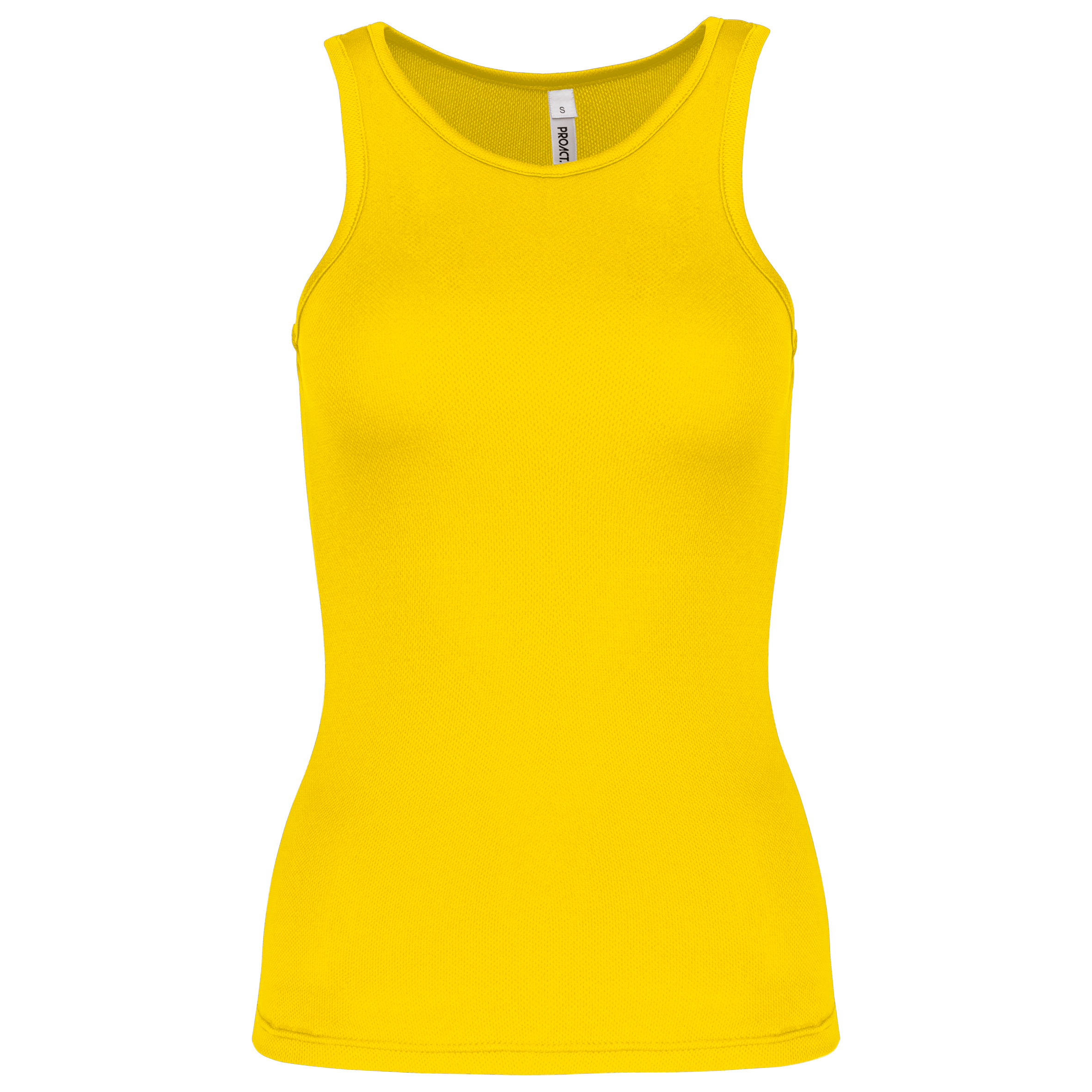 100% polyester. Tissu léger à séchage rapide. Dos nageur. Biais à l'encolure et aux emmanchures. Finition double aiguille au bas du vêtement.