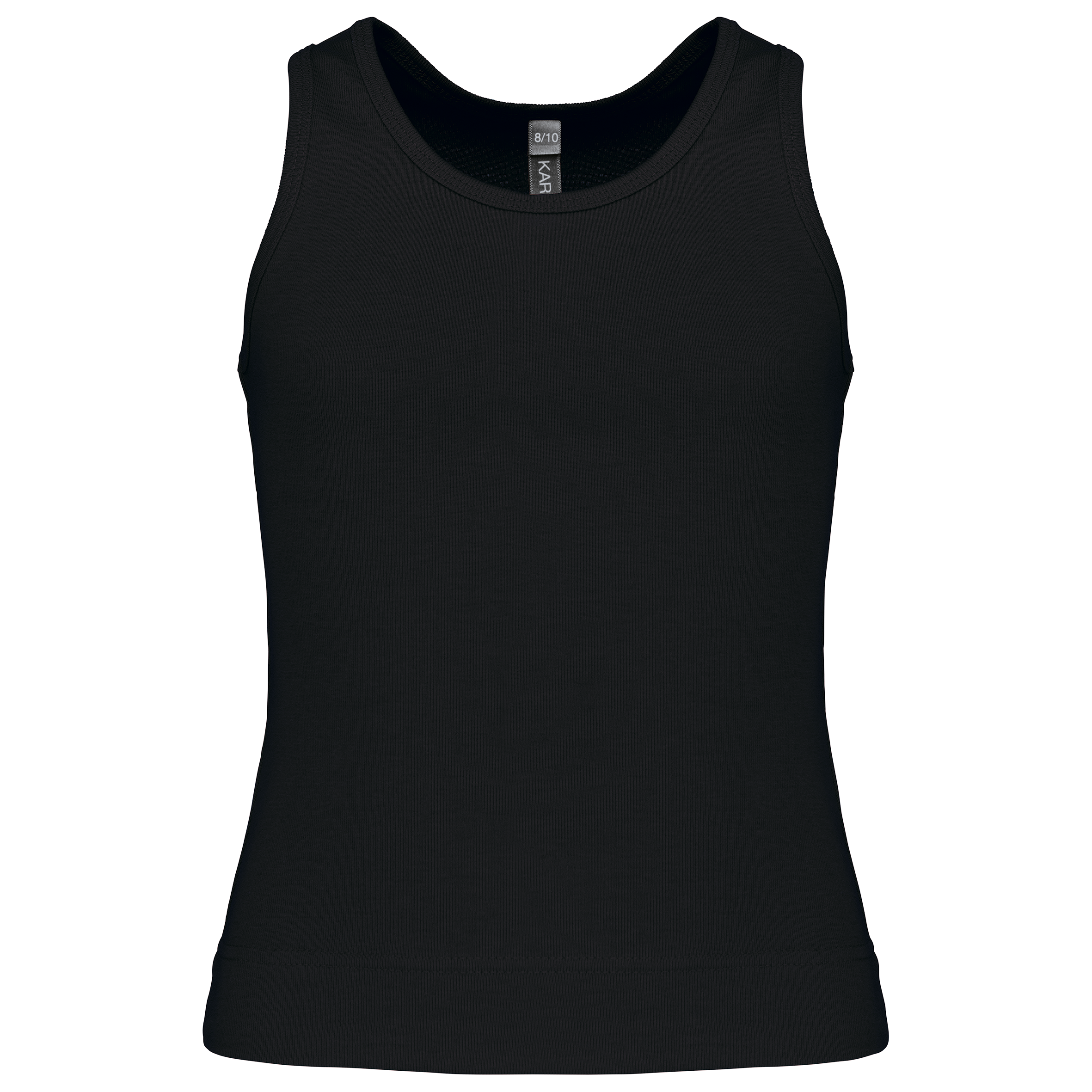 100% coton. Côte 1×1. Dos nageur. Finition double aiguille.