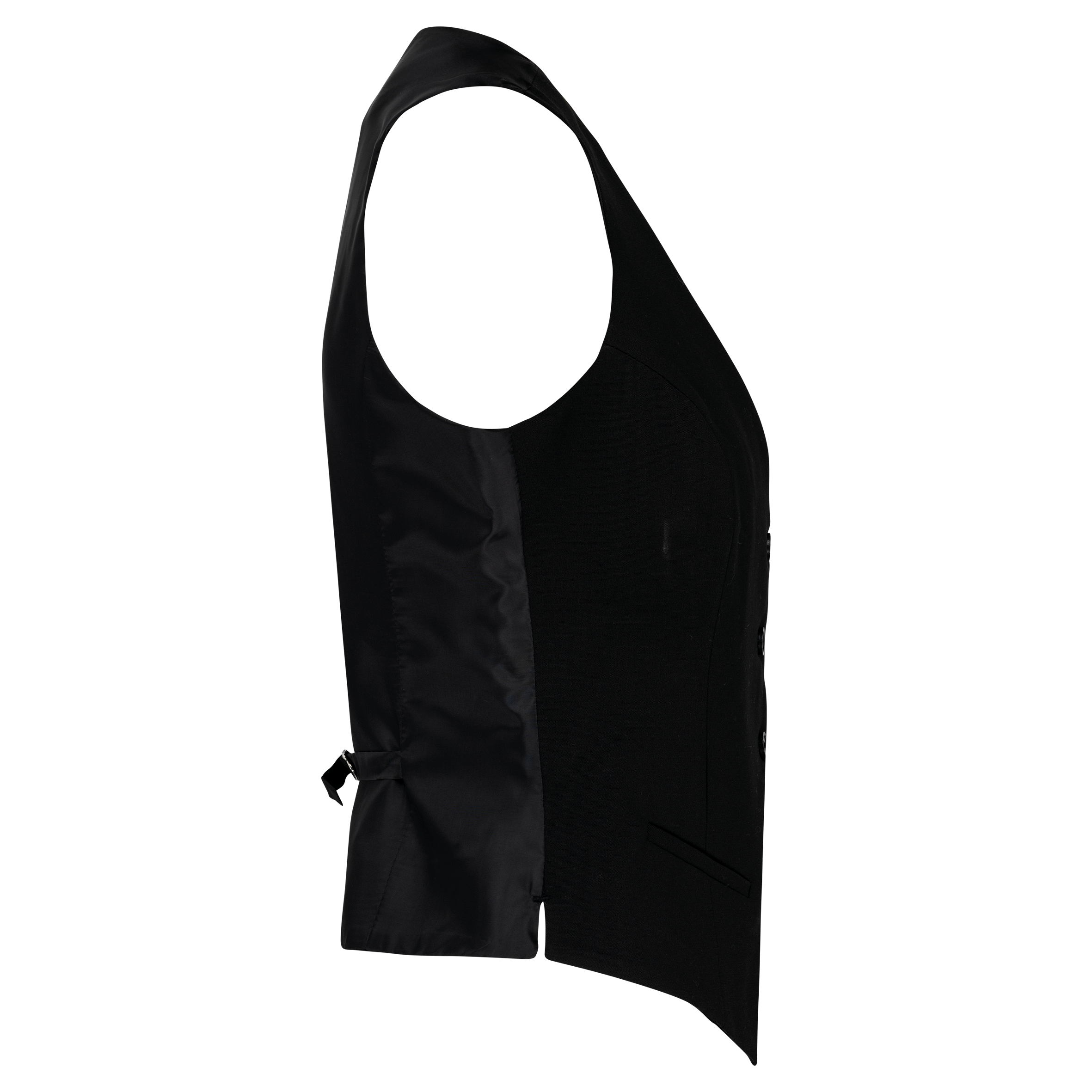64% polyester / 34% viscose / 2% élasthanne. Doublure 100% polyester taffetas. Coupe droite. Fermeture devant 5 boutons. 2 petites poches passepoilées avant. 2 fentes côtés. Dos en doublure. Patte