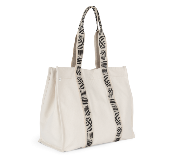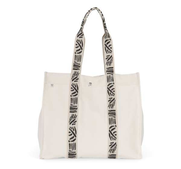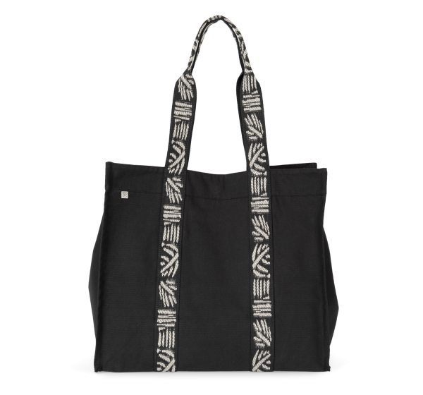 Black Night : 67% coton recyclé / 30% polyester recyclé / 3% autres fibres. Ecume : 75% coton recyclé / 22% polyester recyclé / 3% autres fibres. Anses contrastées cousues tout le long du corps