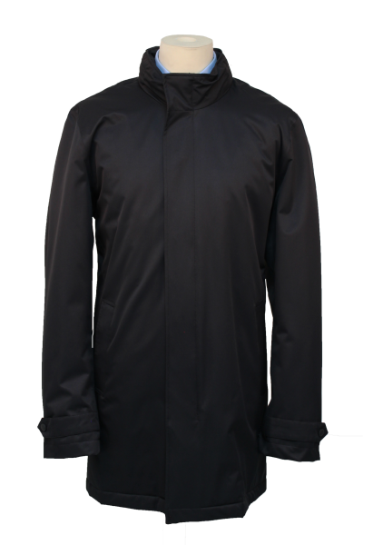 100% Polyester, résistant à l’eau (2000mm). 5 boutons avec zip, résistant à l’eau, fente centrale, 2 poches avant, doublure matelassée avec 2 poches internes, capuchon enroulé dans le col. L