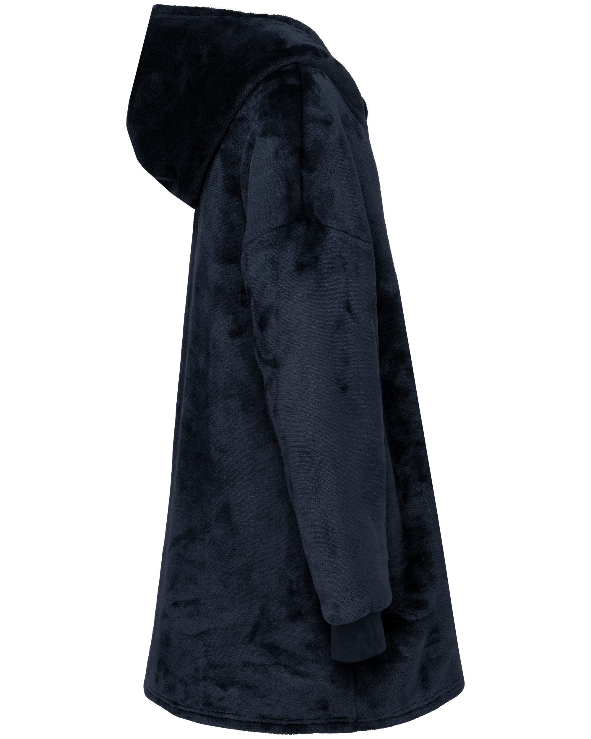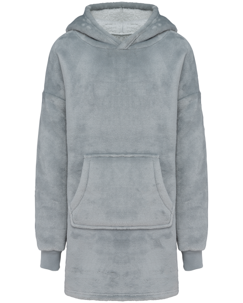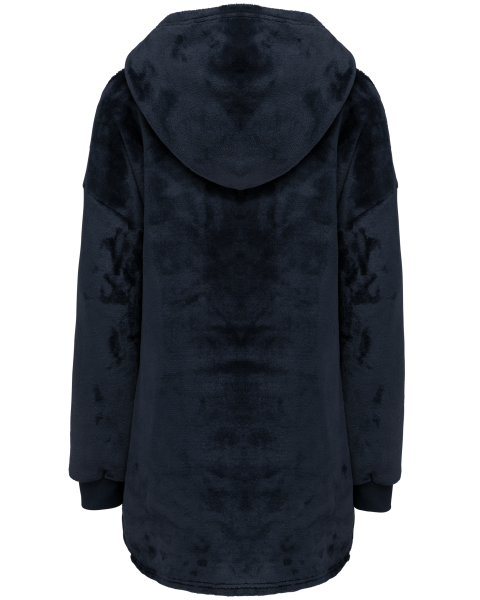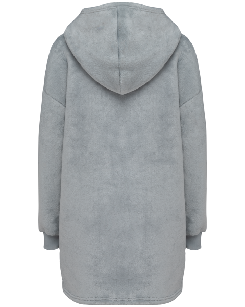 100% polyester. Coupe oversize aux épaules tombantes. Tissu double face, extérieur velours avec intérieur sherpa. Capuche croisée devant en deux panneaux avec finitions double surpiqûre. Manches