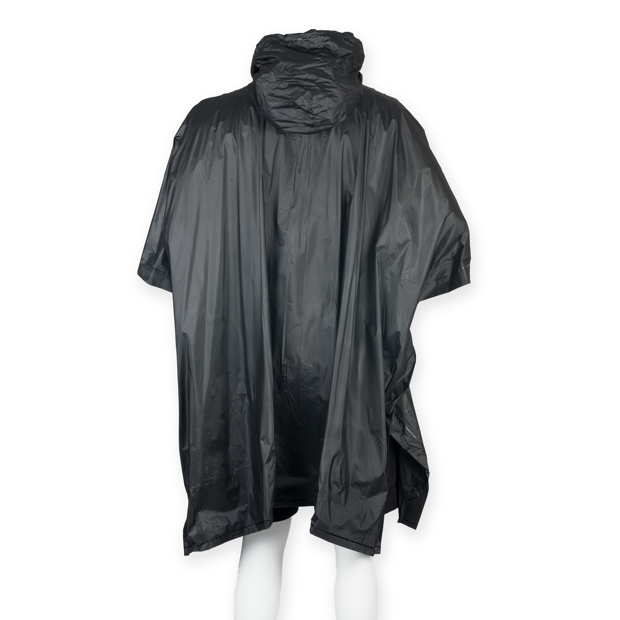100 % PVC. Poncho avec col à boutons pression. Peut être replié sur lui-même dans sa pochette. Capuche à cordon de serrage. Imperméable et coupe-vent, il peut également se poser pour se protég