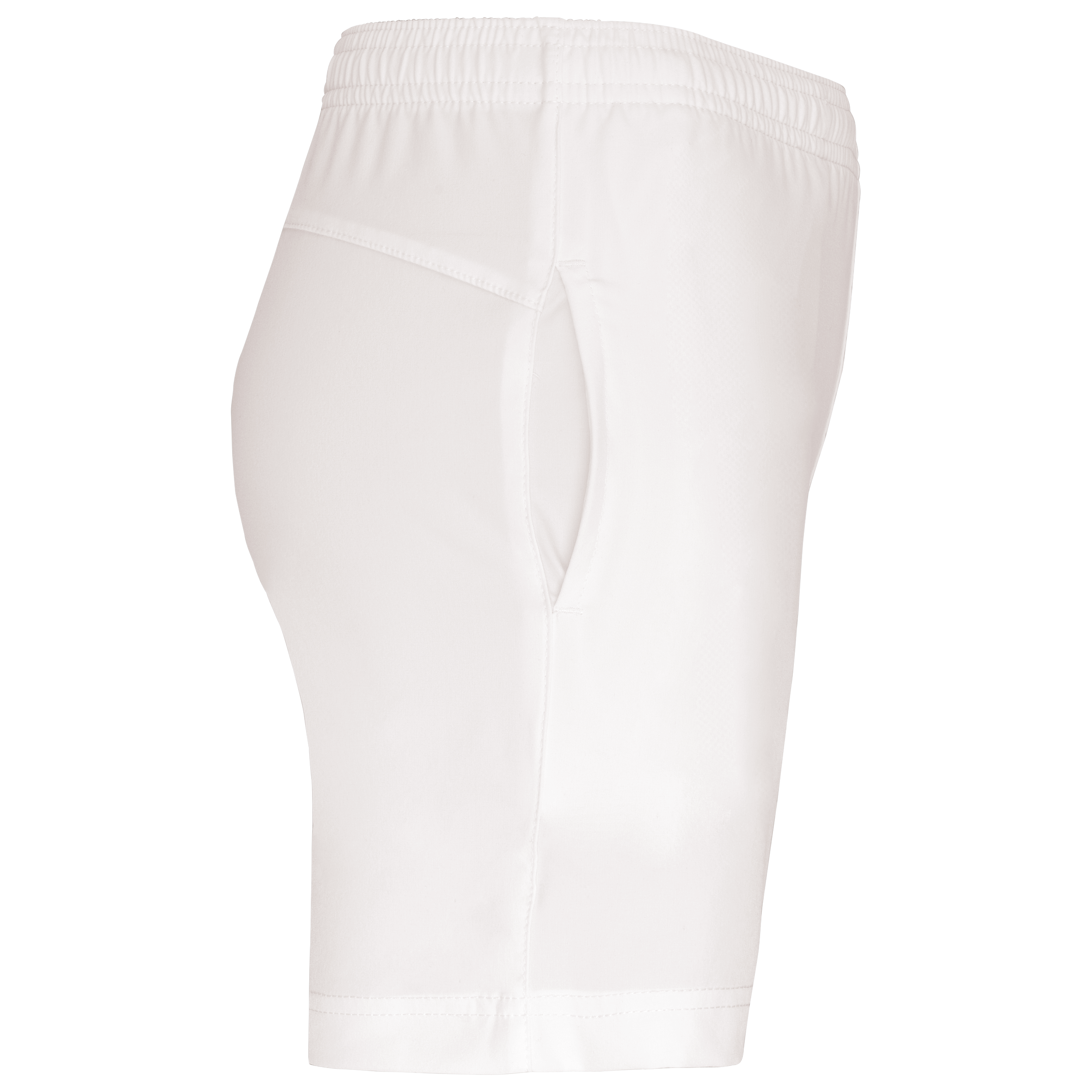 94% polyester / 6% élasthanne. Matière très souple et confortable. 2 poches profondes devant. Taille élastiquée avec cordon de serrage.