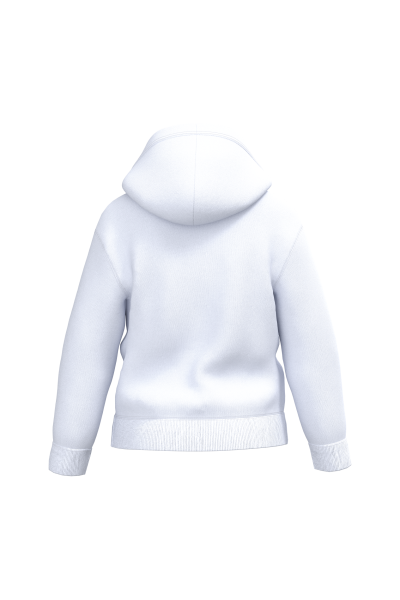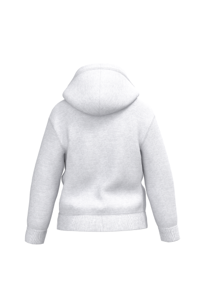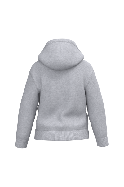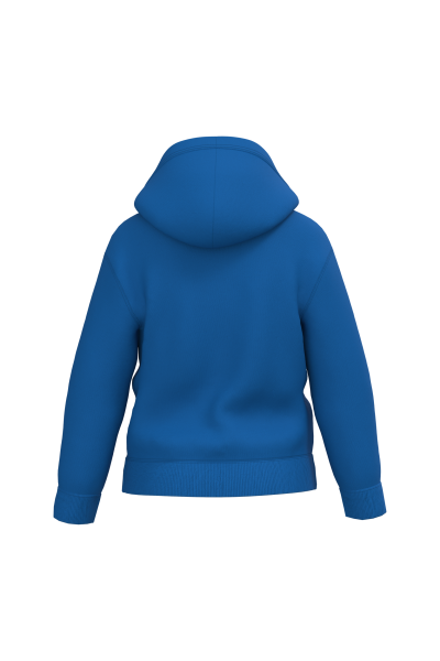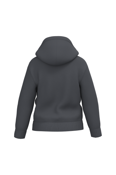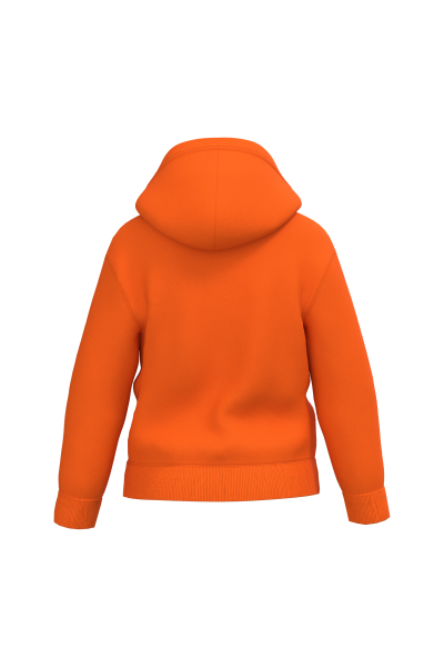 50% coton / 50% polyester. Molleton gratté coupé-cousu. Coupe regular. Bas de manches et bas de vêtement finition bord côte 1×1 avec double surpiqûres. Poche kangourou. Capuche doublée en jersey