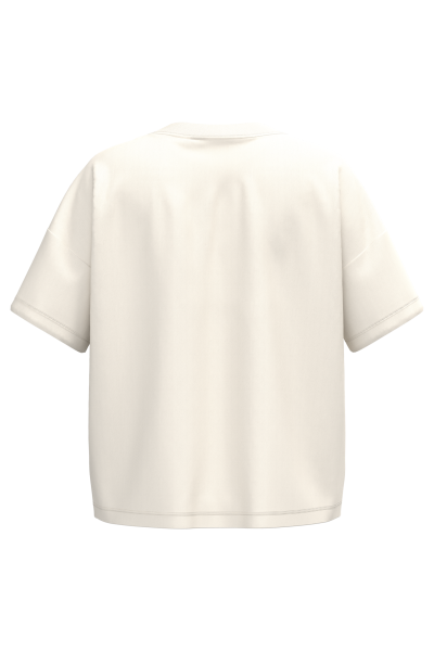 100% coton biologique. Coton peigné ringspun. Coupe oversize à épaules tombantes. Coutures latérales. Bord côte col 1 x 1 et surpiqûre nervurée. Bande de propreté intérieure col en matière p