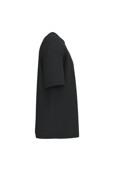 85% coton biologique / 15% polyester recyclé post-consumer. Coton peigné. Coupe oversize à épaules tombantes. Produit hybride entre le sweatshirt et le t-shirt. Molleton 3 fils non gratté LST (Lo