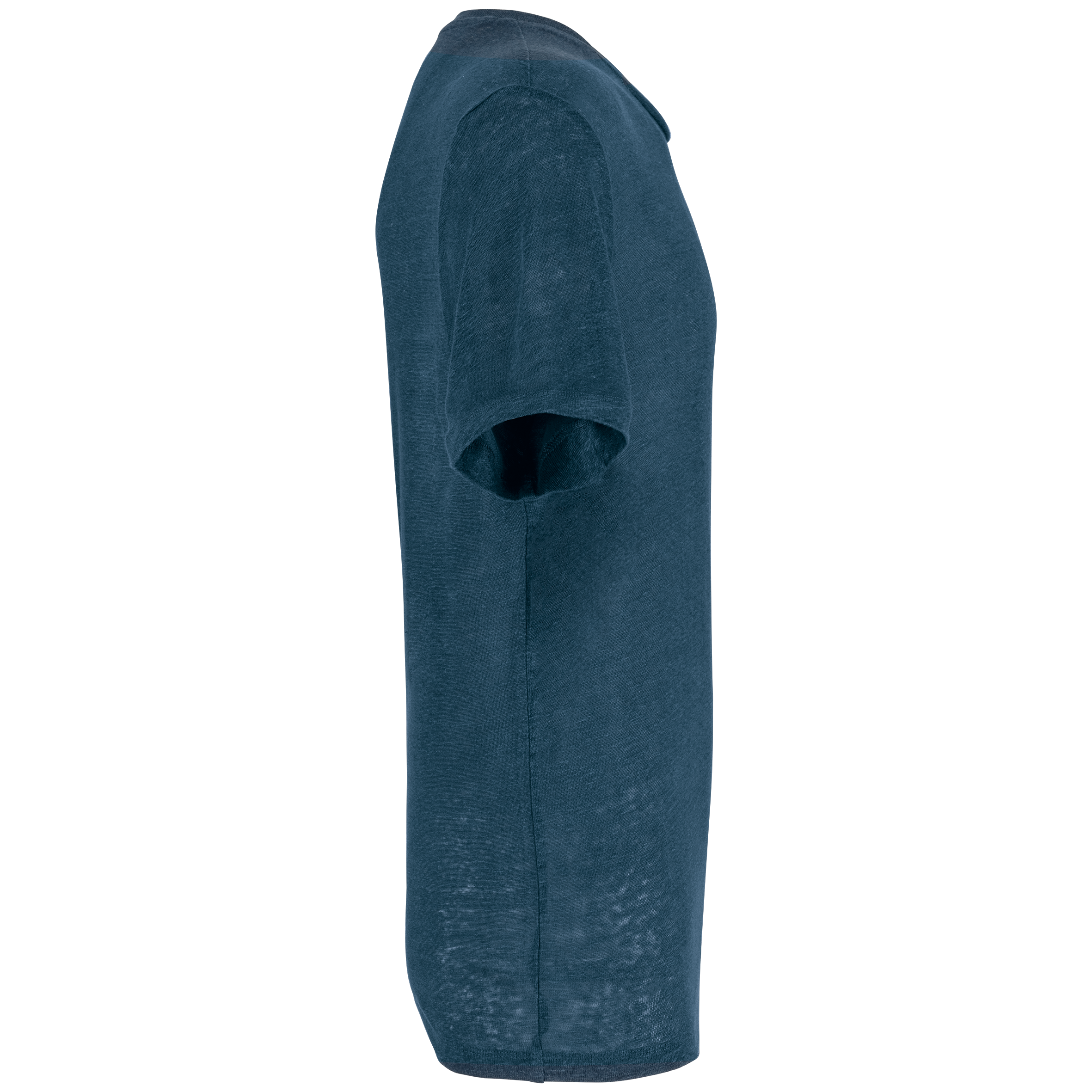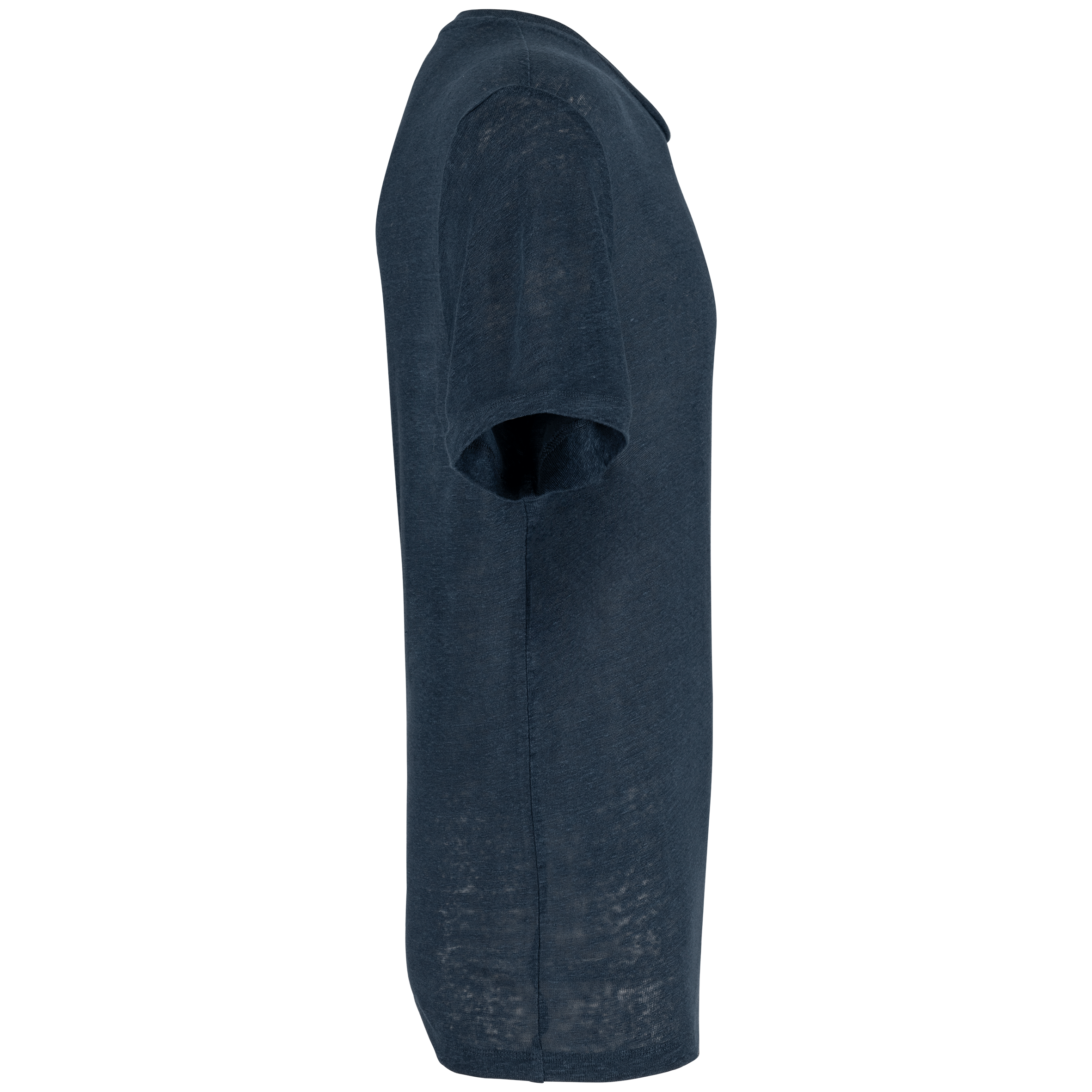 100% lin. Maille. Coupe droite. Coutures latérales. Col en matière principale. Bande de propreté intérieure col en matière principale. Ourlet double surpiqûre bas de manches et bas de vêtement.