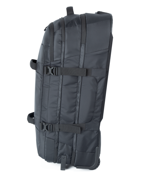 100% polyester. Trolley de taille XL. Double compartiment avec panneau de séparation zippé pour le transformer en un seul grand compartiment. Grande poche frontale avec double poignée. Système de